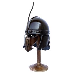 This medieval black helmet is quite comfortable to wear as well. The chin strap is given to hold it on head during movement. Leather liner is used inside the helmet. Includes wooden display stand which makes it a great piece of decor. You can use it in a variety of ways. It can serve as your Halloween costume. In addition, it can be your cosplay weapon to take part in LARP. Buy this gorgeous medieval helmet now at the most reasonable price in the market. We instantly ship your order at your doorstep within a business day. Get free shipping over $99.