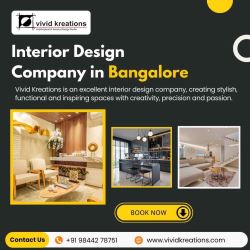 Vivid Kreations is a leading interior design company in Bangalore, specializing in the design and remodeling of interiors, turning them into beautiful and unique places. We are experts in residential, commercial and custom interior design solutions that reflect style, comfort and functionality. Our designers combine creativity with functionality to deliver customized interiors that reflect your vision. Vivid Kreations is committed to providing quality work, innovative designs and on-time completion of projects. Our experience includes a variety of modern and classic interiors, which show our commitment to quality design. Make your dream interiors a reality by contacting Vivid Kreations today for a free consultation.