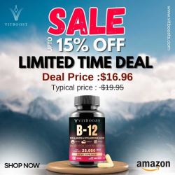 Boost your daily wellness with the Vitboost B12 Complex Extra Strength, formulated with 25,000 mcg of Methylcobalamin B12, Collagen, Folate, and essential B vitamins (B1, B2, B3, B6, B7). This powerful blend supports energy production, nervous system health, red blood cell formation, and promotes healthy skin, hair, and nails. Enhanced with Hyaluronic Acid and Collagen, it not only fuels your body but also supports joint health, hydration, and natural beauty from within. ✅ Extra Strength 25,000 mcg B12 Complex ✅ Includes Collagen, Folate & Hyaluronic Acid ✅ Supports Energy, Mood & Brain Function ✅ Promotes Healthy Hair, Skin & Nails ✅ Gluten-Free, Non-GMO & Made in USA Buy Now at Amazon - https://shorturl.at/yQMvo ✨ Limited Time Deal – Take charge of your energy and vitality today!