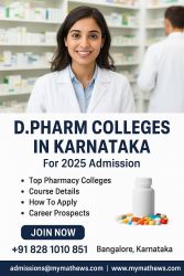 Admissions open for D.Pharm 2025 in top pharmacy colleges across Karnataka including Bangalore, Davanagere, Bidar, Mandya, Kalaburagi, and more. Get details on eligibility, admission process, and career opportunities. Contact MyMathews at +91 828 1010 851 or visit MyMathews