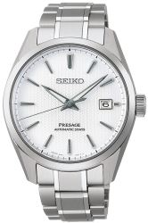 Seiko Presage Sharp Edged Series White SARX115 – a refined dress watch from Seiko's JDM lineup. Crafted from pure titanium with a diamond shield coating, this timepiece offers a lightweight and durable design. The white dial features a subtle hemp leaf pattern, adding a touch of Japanese artistry. Powered by the 6R55 automatic movement, it boasts a 72-hour power reserve. Additional features include a dual-curved sapphire crystal, 100m water resistance, and Lumibrite hands for enhanced visibility. Ideal for formal occasions or daily wear.