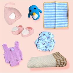 Welcome a little one with the Newborn Gift Hamper from Little Croche Creations. Filled with handmade crochet goodies like cozy booties, caps, and baby wear. This hamper blends charm and comfort. A perfect, heartfelt gift for new parents and their precious bundle.