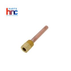 The Honeywell 112630AA Well Assembly with a 3/4-inch connection and 4.25-inch copper insert is designed to house temperature sensors for reliable monitoring in HVAC and hydronic systems. Installed in boilers, chillers, and piping systems, it allows sensors to be easily inserted or replaced without draining the system. The copper construction ensures excellent thermal conductivity for accurate readings, while the sturdy design supports long-lasting performance. This well assembly improves serviceability, reduces downtime, and enhances overall efficiency in temperature control applications.