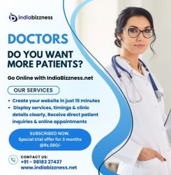 Doctors, do you want to grow your practice and get more patients? With IndiaBizzness.net, you can go online easily and build your professional clinic website in just 15 minutes. Showcase your services, clinic timings, and details clearly while receiving direct patient inquiries and online appointment requests. Take advantage of our special trial offer for 3 months at just Rs.590/- and expand your reach today. Don’t miss this opportunity to connect with more patients!