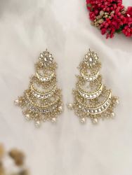 Gold Plated Kundan Chandbalis — regal chandbalis crafted with sparkling kundan stones and gold plating, offering lightweight elegance and traditional charm; perfect for bridal, festive and wedding ensembles to elevate sarees, lehengas and indo-western outfits.