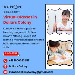 Kumon provides engaging Virtual Classes in Dollars Colony designed to keep your child learning, growing and achieving right from home. Our personalized online sessions help students build strong math and reading skills, improve focus and develop self-learning habits at their own pace. Expert guidance and interactive worksheets enable your child to stay consistent and confident in their learning process. Kumon's interactive learning never stops, whether you're at home or on the go. Enroll today in Kumon’s Virtual Classes in Dollars Colony and give your child the tools to succeed anytime, anywhere. Our services: * Math classes * English classes
