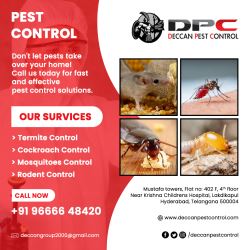 Deccan Pest Control offers the best pest control services in Hyderabad with safe, eco-friendly, and affordable solutions. From cockroaches and termites to ants, rodents, and bed bugs, our certified experts provide reliable treatment for homes, offices, and commercial spaces. We ensure complete pest elimination with advanced methods and long-lasting protection. Customer satisfaction and safety are our top priority. Call +91 9666648420 today for quick, effective, and professional pest control services in Hyderabad.