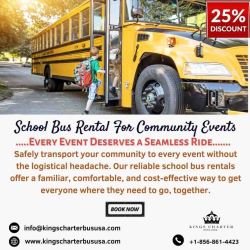 Bring your community together with safe, reliable, and affordable School Bus Rentals for Community Events! Whether it’s a local fair, cultural gathering, sports day, or charity event, our spacious buses ensure everyone arrives comfortably and on time. Simplify group travel, reduce parking hassles, and enjoy the ride as one big community. Book your school bus rental today and make your next event organized, stress-free, and memorable! Business Name: Kings Charter Bus USA Address: 8109 Portwood Turn Manassas, VA, 20109 Dial: +1-856-861-4423