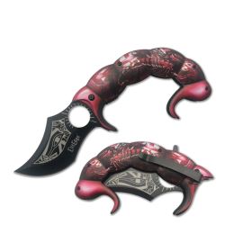 This red fantasy pocket knife knife feels like a beast in your hand! Massive 8.5" when it's open and a solid, beefy construction. Add this to your collection or carry it everyday to show off. It can be quickly deployed with the spring assisted opening mechanism, using the flipper.