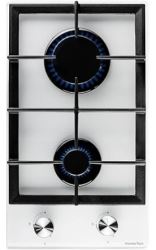 PremierTech PC302GW Gas Hob 2 Burners 30 cm White Glass Domino Module Built-in Electric Ignition Cast Iron Grills Compatible Methane and LPG Compact for Home Camper Small Kitchens