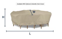 Safeguard your oval patio table and chairs with the Meridian Table Set Cover from National Patio Covers. Crafted from durable, weather-resistant materials, this cover shields your furniture from rain, snow, and sun damage. Available in various sizes to ensure a perfect fit.