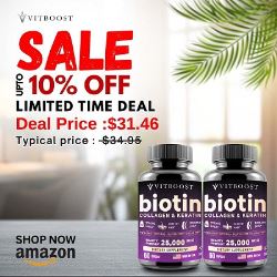Unlock beauty from within with Vitboost 25,000 mcg Biotin Complex! 🌿 Formulated with Biotin, Hyaluronic Acid, Collagen, Keratin, and essential B vitamins (B1, B2, B3, B6, B7), this premium supplement is designed to support stronger hair, radiant skin, and healthier nails. Crafted in the USA, third-party tested, and made for both men and women, Vitboost delivers quality you can trust in every capsule. Buy Now at Amazon - https://shorturl.at/Dj1iR ✨ Limited Time Deal – Save 10% Today!