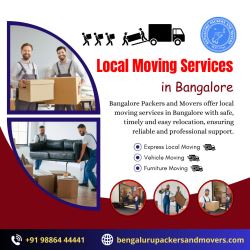 Bangalore Packers and Movers offers reliable local moving services in Bangalore for homes, offices and apartments. We provide professional packing, safe loading, secure transportation and timely delivery to make your relocation smooth. Our team ensures hassle-free shifting with high-quality packing materials and modern equipment. Bangalore Packers and Movers focus on customer satisfaction by handling every item with the greatest care. We offer affordable rates and reliable support for a stress-free moving experience. Bangalore Packers and Movers guarantee safety, efficiency and peace of mind in every move. Contact us today for the best local moving services in Bangalore.