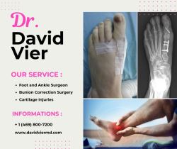 When you search for a foot and ankle orthopedic surgeon near me in Dallas, TX, you deserve a physician who brings precision, compassion, and advanced techniques to every case. Dr. David Vier specializes in diagnosing and treating complex foot and ankle conditions—ranging from bunions and fractures to tendon and cartilage injuries. With fellowship training, state-of-the-art imaging, and a patient-focused approach, Dr. Vier offers both conservative therapies and minimally invasive surgeries.
