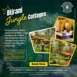 Discover an authentic nature getaway with Camping In Corbett at Bijrani Jungle Cottages, nestled within Jim Corbett National Park. The site offers cozy cottages styled like traditional huts with bamboo furnishings, sit-out verandas, and garden access—immersing guests in the wilderness. Choose from several package options (INR 5,500 to 8,500/night) inclusive of buffet meals, welcome drinks, unlimited water, and Wi-Fi. Stay in comfort with amenities such as king-size bedrooms, heaters, air coolers, laundry, parking, concierge, power backup, on-call doctor, enchantments like bonfires, stargazing, riverside walks, and indoor games. For bookings or more info, contact +91 8130781111, +91 8826291111, or +91 9910902216.