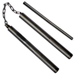 Crafted out of lightweight Aluminum Glossy black finish Easily converts from nunchucks to a baton and back 5" Ball-bearing swivel chains Baton Length: 21.5" (approx.) Nunchuck Handle Length: 10.75" (approx.) Diameter: 1" (approx.)