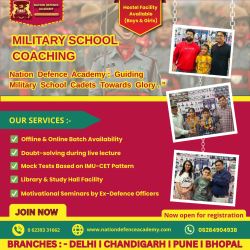 Join the **Nation Defence Academy**, the best choice for **Military School Coaching Classes in India**. We provide expert guidance for admission to top military schools through experienced faculty, structured study materials, and personalized mentoring. Our result-oriented coaching method helps students excel in written exams, interviews, and physical fitness tests.We build confidence and leadership through our coaching With small batches and regular mock tests, we ensure every student gets individual attention to succeed confidently. Build your foundation for a proud defence career with the **Nation Defence Academy**—India’s trusted name in military school exam preparation. Enroll today and start your journey toward a disciplined and successful future!