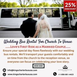 Make your big day seamless and stress-free with our Wedding Bus Rental from Church to Venue transfers! Enjoy a smooth, elegant ride that keeps your guests together and on time. Our luxury buses ensure comfort, style, and convenience—so everyone arrives ready to celebrate your love story. Book today and let us handle the travel, while you focus on your happily ever after! Business Name: Kings Charter Bus USA Address: 8109 Portwood Turn Manassas, VA, 20109 Dial: +1-856-861-4423