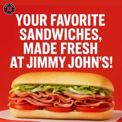 At Jimmy John’s, every sandwich is crafted with freshly baked bread, hand-sliced meats, and crisp veggies for unbeatable flavor in every bite. Whether it’s lunch, dinner, or a quick snack, we’ve got your cravings covered. Order online or through the Jimmy John’s app for pickup or freaky fast delivery today!