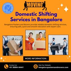 Bangalore Packers and Movers offer high-quality and affordable domestic shifting services in Bangalore to make your move easy. We specialize in safe packing, careful loading, secure transportation, and timely delivery of your household goods. Our team ensures personalized solutions to meet your specific shifting needs. Bangalore Packers and Movers use the best packing materials and modern equipment for a smooth relocation. Our experienced staff handles every step with accuracy and care. We prioritize safety, efficiency and customer satisfaction in every move. Contact Bangalore Packers and Movers today for your next domestic move.