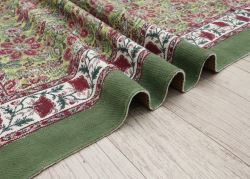 Floral Block Printed Cotton Rug Green Area Carpet Custom Siz