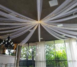 Elevate your wedding ambiance with A Touch of Drapery in the Atlanta area, Georgia. Specializing in ceiling drapery for weddings, we create breath-taking, luxurious décor that transforms any venue into a dreamy celebration. Expert installation, flawless design, and unforgettable elegance for your special day. Call us today at 404-913-0644 to book your consultation.