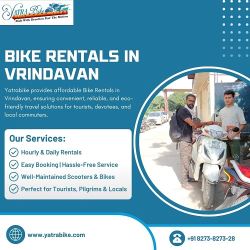 YatraBike offers convenient and affordable scooty rental services in Vrindavan, making it easy for tourists to explore the beautiful town and its surroundings at their own pace. Whether you're visiting for the first time or a returning traveler, renting a scooty gives you the freedom to navigate the narrow lanes, temples, and scenic spots without the hassle of public transport or the expense of taxis.