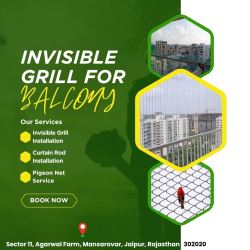 Looking to secure your balcony without blocking the view? Our Invisible Grill Installation service in Jaipur offers premium safety with a sleek, modern design. Perfect for apartments, kids, and pets, our stainless steel grills ensure safety without compromising aesthetics. We also provide Curtain Rod Installation and Pigeon Net Services.