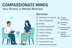 Experience mindfulness therapy at Compassionate Minds Gurgaon to enhance mental clarity and emotional stability. Our trained therapists provide practical tools and guidance to reduce stress, improve focus, and cultivate inner peace. Transform your life with holistic strategies for well-being and lasting emotional balance.