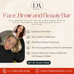DA Beauty Bar is a face brow and beauty bar that helps you look and feel your best. We offer brow shaping, tinting, facials, and other beauty treatments. Each service is carefully performed so you feel refreshed and happy. Our team keeps everything simple and comfortable. Whether you're looking to get your brows done, refresh your skin, or enjoy some pampering, our face brow and beauty bar makes it easy for you.