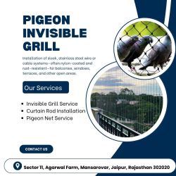 Looking to protect your balcony without blocking your view? Our Pigeon Invisible Grill service offers a sleek and durable safety solution for your home. Ideal for balconies, windows, and terraces — it ensures complete protection for kids and pets. We also provide Curtain Rod Installation and Pigeon Net Services in Jaipur.