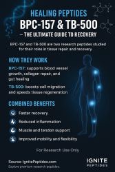 BPC-157 + TB-500 are research peptides studied for their potential to promote faster healing, reduce inflammation, and support muscle and tissue repair. Together, they may help enhance recovery, improve flexibility, and support regeneration.
