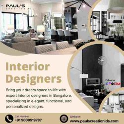 Paul’s Creation offers expert interior designers in Bangalore dedicated to transforming your spaces into elegant, functional, and stylish environments. We specialize in residential and commercial interiors that reflect your personality and lifestyle. Our team combines creativity with modern design trends to craft customized solutions that enhance comfort and aesthetics. We ensure quality materials, timely execution, and professional service from concept to completion. Whether you’re renovating your home or designing a new office, we bring your vision to life with precision and passion. Contact Paul's Creation today for beautiful, long-lasting interiors.