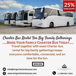 Turn your next family reunion into an unforgettable adventure with our Charter Bus Rental for Big Family Gatherings! No more multiple cars, traffic stress, or missed moments — travel together, laugh together, and arrive together in total comfort. Our modern buses offer luxury seating, onboard entertainment, and plenty of space for everyone. Reserve your charter bus today and make your family journey as memorable as the destination! Business Name: Kings Charter Bus USA Address: 8109 Portwood Turn Manassas, VA, 20109 Dial: +1-856-861-4423