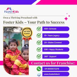 At FosterKids, we are dedicated to providing world-class early childhood education and nurturing the leaders of tomorrow. As one of the fastest-growing preschool franchises in India, we operate in over 100 cities, including a strong presence in Delhi NCR and major metro- politan areas. Founded by the experienced Foster Group of Schools, FosterKids blends innovative teaching methods with a child-friendly curriculum tailored specifically for Indian children. Our franchise model offers aspiring entrepreneurs and educators an excellent opportunity to start and run successful play schools with complete support. Foster Kids is proud to offer one of the best preschool franchise opportunities in India, combining low investment, zero royalty, and end-to-end support. Whether you’re an entrepreneur, educator, or dreamer, our preschool franchise model empowers you to start your own successful play school business with confidence. Foster Kids offers India’s most affordable preschool franchise without compromising quality. Open your own play school franchise in India with our trusted brand name and curriculum. We make it simple to launch a preschool in India with 360-degree support and no royalty fees. Preschool education in India is evolving, and Foster Kids is leading the transformation. Our early childhood education system is tailored for Indian culture, values, and families. Running a preschool business in India is both profitable and emotionally fulfilling. With Foster Kids, you can start a preschool anywhere in India — urban or semi-urban. At #Foster_Kids_Franchise, we provide a #unique_opportunity to combine your desire to help others with a rewarding business model. Our #franchise is dedicated to supporting #foster_children and families, offering resources, training, and a community of like-minded individuals who share your vision for change. By joining our franchise, you can: ✅Empower foster children and families in need ✅Build a sustainable business that makes a difference ✅Receive comprehensive training and ongoing support ✅Connect with a network of passionate franchisees Message us now or visit https://fosterkids.in to learn more about joining the #Foster_Kids_Franchise family. Call Us Now + 91 – 95555 73376