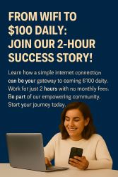 Learn how a simple internet connection can be your gateway to earn $100 a day. Work from home just 2 hours with no monthly fees. Be part of our empowering community. Start your journey today. Start Today, Earn $100 Tomorrow. Your program works automatically for you 24/7, and you get a website that is 90% already done for you